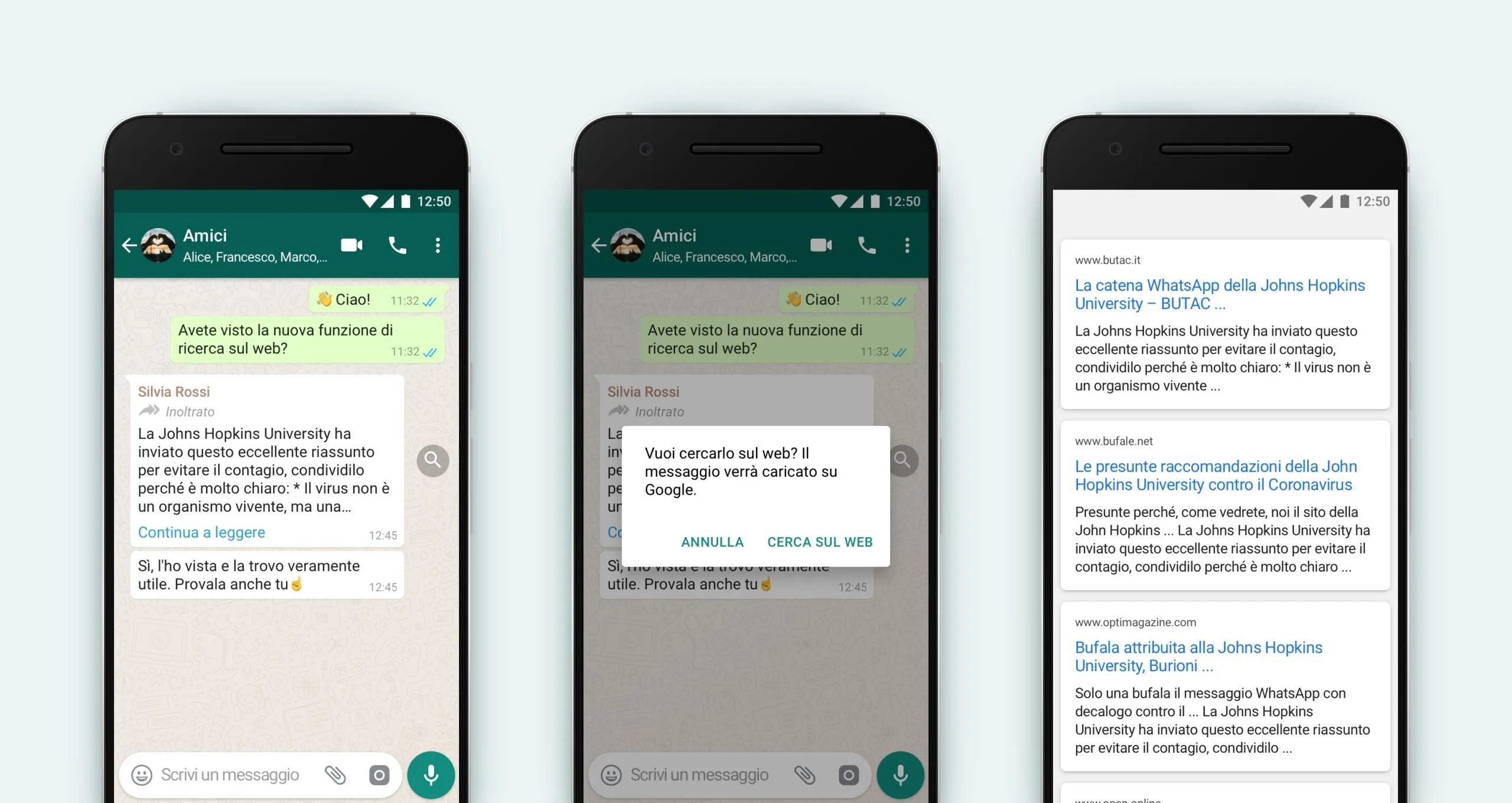 Tale messaggio verrà così ricercato sul web tramite il browser, senza che WhatsApp abbia accesso al contenuto del messaggio.